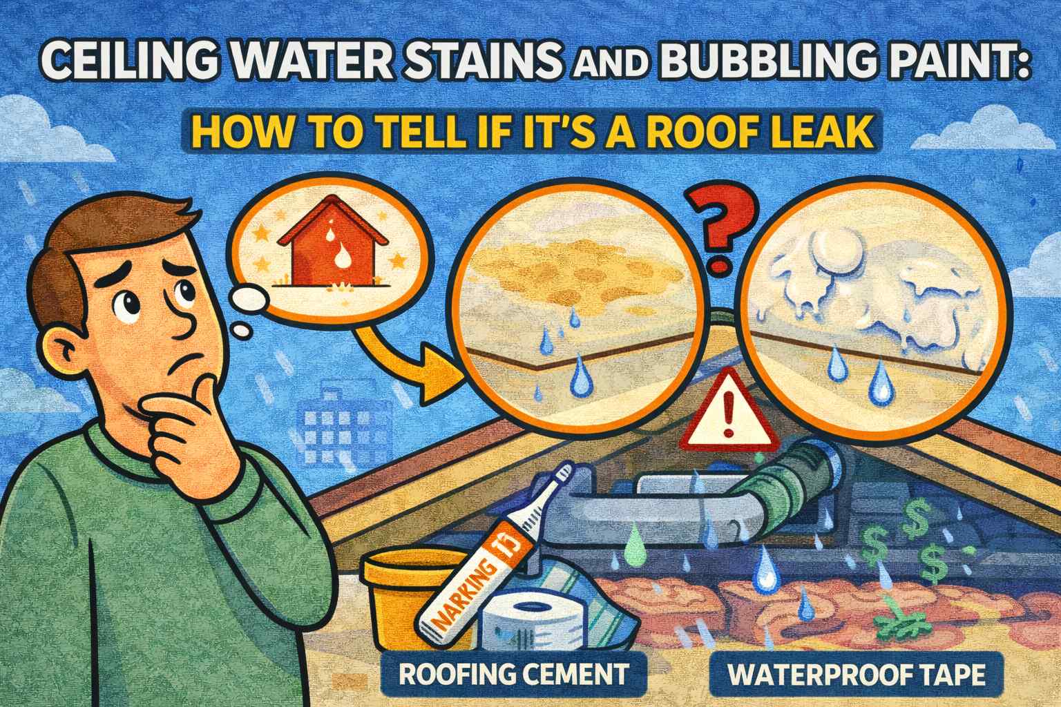 Ceiling Water Stains and Bubbling Paint: How to Tell If It’s a Roof Leak